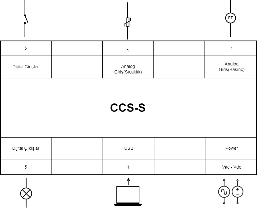 5 dijital giriş, 5 dijital çıkış (6A AC3).